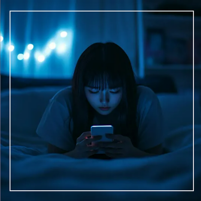 스마트폰과 TV에서 나오는 블루라이트는 멜라토닌 분비를 억제하여 숙면을 방해합니다.