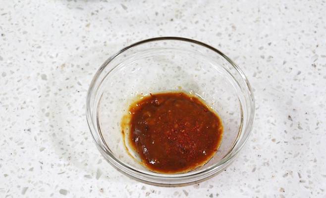 된장 1스푼, 고추장 반스푼, 다진 마늘 반 스푼, 고춧가루 반스푼, 마요네즈 반 스푼을 넣고 골고루 섞어주세요.