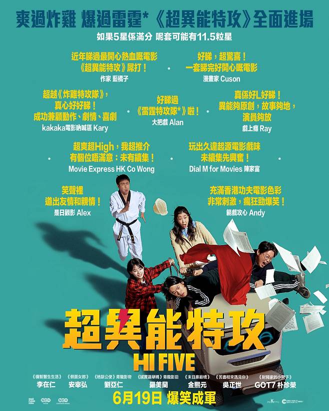 영화 ‘하이파이브’가 홍콩과 태국에서 ‘야당’, ‘히트맨2’ 등 올해 개봉한 한국영화를 모두 제치고 흥행 1위를 차지해 화제를 모으고 있다. '하이파이브'는 장기이식으로 우연히 각기 다른 초능력을 얻게 된 다섯 명이 그들의 능력을 탐하는 자들과 만나 벌어지는 이야기를 그린 코믹 액션 활극.