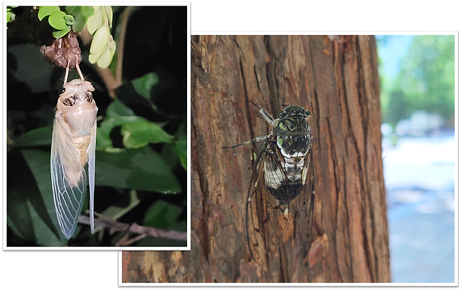 (7) 유충에서 갓 우화한 매미는 하얀색이다.