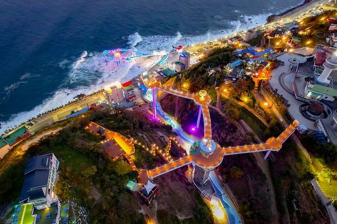 해발고도 59m 높이의 하늘 산책로와 초대형 슬라이드, 스카이 사이클 등 체험시설을 겸비한 이색 명소 도째비골 스카이밸리입니다. 현재 많은 사랑을 받고있는 강원도의 관광 명소 중 한 곳이라 할 수 있죠. 해랑 전망대는 도깨비방망이를 형상화하여 시원한 묵호 바다를 조망할 수 있는 약 85m 길이의 해상 보도 교량인데요.