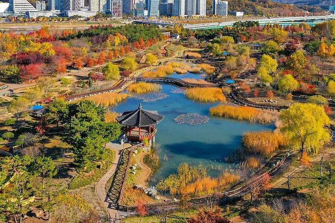 한밭 수목원은 대전의 최대 도심지 둔산에 자리하고 있으면서 우성이산, 갑천과 유등천, 정부대전청사 녹지 축에 연계된 전국 최대의 인공 수목원입니다.