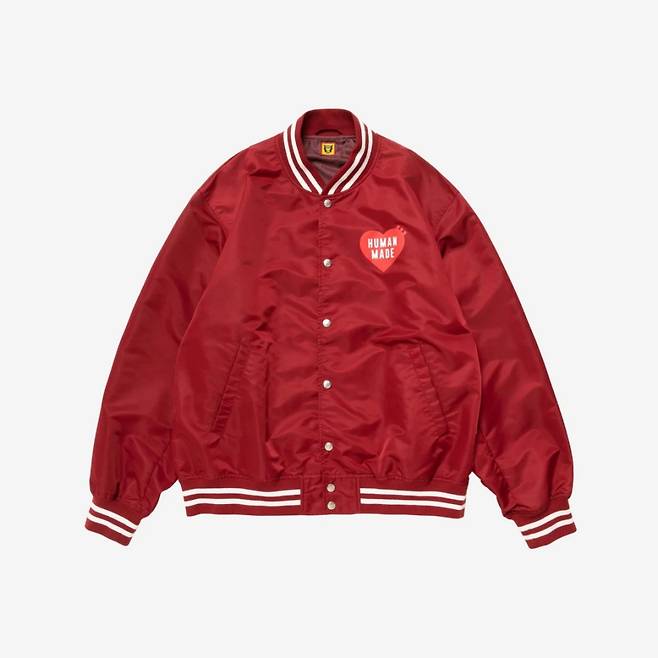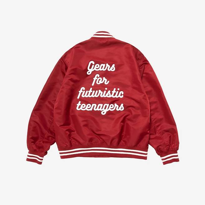 1950년대 미국 스포츠웨어를 현대적으로 풀어낸 스타디움 재킷. 가슴과 등판에 각각 새겨진 시그니처 하트 로고와 ‘Gears for futuristic teens’라는 슬로건으로 휴먼 메이드의 개성을 강하게 드러내죠.