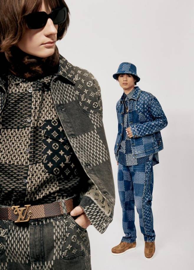 스트리트 패션과 하이패션의 경계를 허문 LV² 컬렉션입니다. 루이 비통의 LV 모노그램 패턴을 패치워크로 풀어낸 데님 셋업, 루이 비통 블루종 등판에 큼지막하게 새겨진 귀여운 자수 포인트 등 루이 비통의 럭셔리한 감성에 니고의 유머를 더해 독창적인 컬렉션을 선보였죠.
