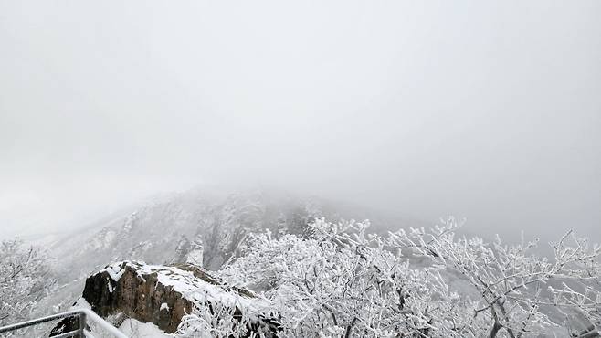 정상입니다. 눈이 많이 내리기 시작해 빠르게 원점 회귀합니다. 서울에서도 한 번쯤은 대중교통으로도 가볼만한 멋진 산입니다.