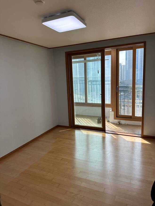 안방이 굉장히 넓은 구조였어요. 안방엔 베란다도 확장되어있지 않을 뿐더러 베란다가 무려 2개나,, 있더라구요? 조금 특이한 구조였어요. 그래서 저흰 베란다 하나를 확장하기로 합니다.