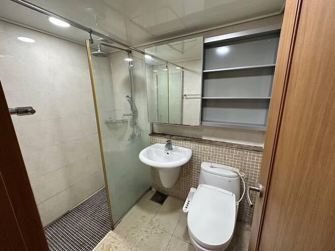 작은 공간이지만 꼭 필요한 것들이 옹기종기 모여있답니다! 바닥 타일도 상태가 괜찮아서 깔끔하게 청소만 하고 사용 중입니다.