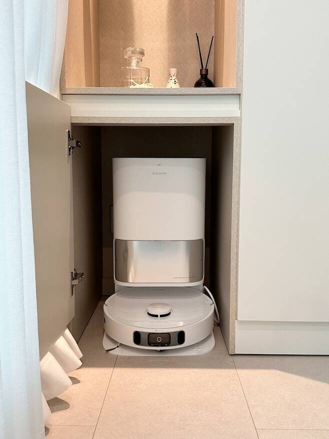 그리고 술장 밑으로 빼꼼 보이는 로봇청소기.