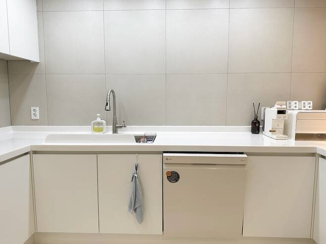 주방 싱크대 위에도 역시나 딱 필요한 것들만 올라와 있어요. 아기자기한 성격이 아닌 것도 있지만 물건이 많이 나와있는 걸 정말 못 견뎌요ㅠㅋㅋ
