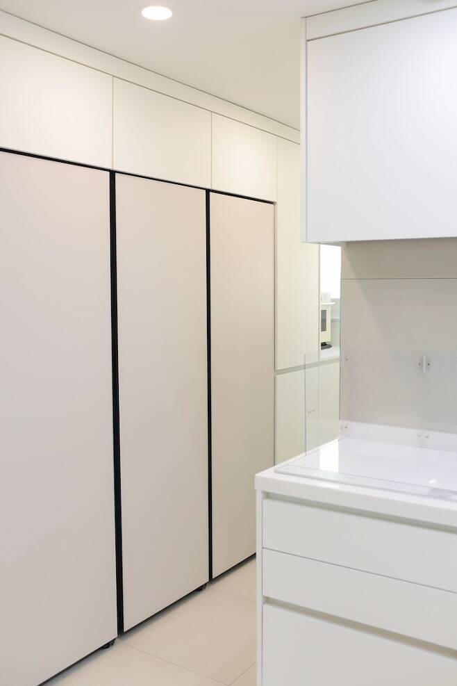 냉장고가 들어오는 날,, 냉장고가 다시 돌아가는 해프닝도 있었죠ㅠ 아찔... 냉장고 옆, 위론 수납공간들을 모두 만들어 달라고 요청했어요. 수납공간은 많아서 나쁠 게 하나도 없어요!