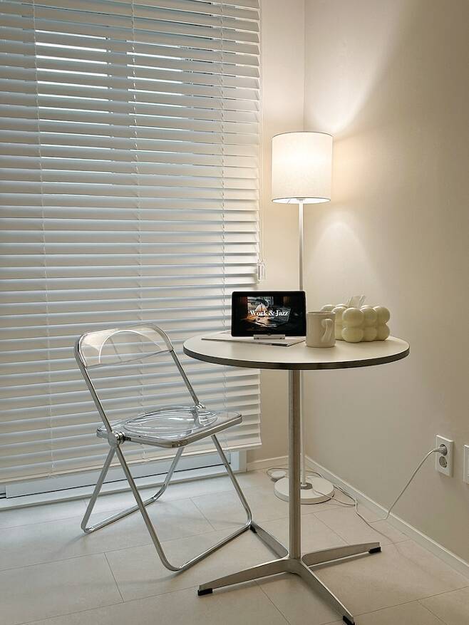 마지막 사진에 보이는 것처럼 철거 못하는 내력벽이 있어 약간 아쉬움은 있지만 나름 아늑한 공간이 되어 참 좋습니다. 저희가 늦잠 자는 날에 6살 여자아이는 저 테이블에 앉아 그림도 그리고 놀아요ㅋㅋ 그리고 저 창밖으론 숲 뷰여서 저기 앉아서 멍 때리고 있으면 정말 좋아요.