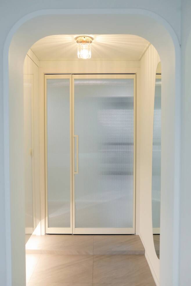 그래서 선택한 모루 유리가 들어간 여닫이 중문. 원하는 바가 정확한 터라 ㅋㅋ 어렵지 않게 선택했던 중문이에요. 모루 유리 너무 좋아요... ♥