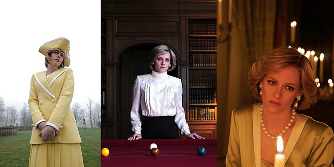 비운의 영국 왕세자비로 알려진 다이애나 비의 실화를 바탕으로 제작된 영화 <스펜서>는 다이애나 비 역할을 맡은 크리스틴 스튜어트의 연기로 호평을 받아 작년 아카데미 시상식 여우주연상 후보에 올랐는데요. 특히, 영화 속 다이애나 비를 비롯한 찰스 왕세자와 왕실 가족들의 패션은 당시 영국 왕실 패션과 높은 싱크로율을 보이고 있죠.