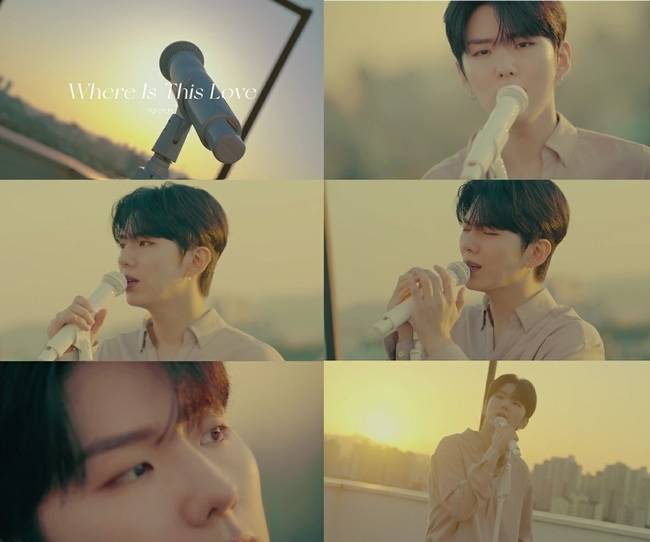 공개된 영상 속 기현은 도심 속 해지는 노을을 배경으로 ‘Where Is This love’ 무대를 시작했다.