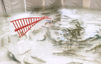 ▶ 송어구이와 송어회 현장 판매