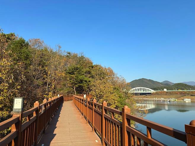 또한 안전을 위해 철제 난간과 견고한 바닥이 설치되어 있어 누구나 부담 없이 걸을 수 있으며, 곳곳에 포토 스폿이 마련되어 있어 가을 감성 사진을 남기기에도 좋습니다.