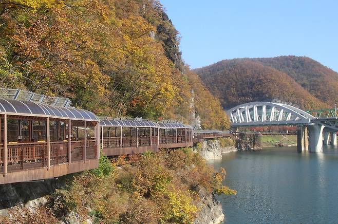 걷는 동안 발아래로 보이는 강물, 바람에 스치는 낙엽, 절벽과 단풍의 대비가 만들어내는 풍경은 계절이 주는 가장 깊은 감동을 선물합니다.