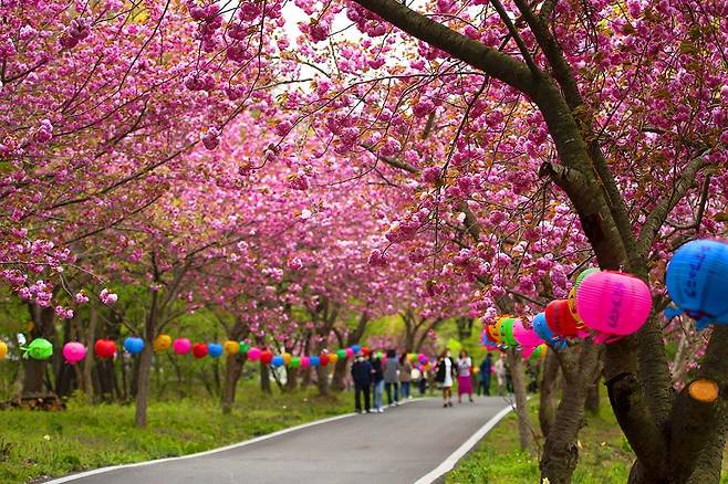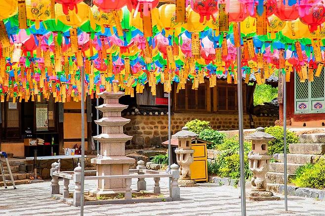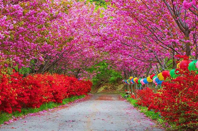 연등 아래 흐드러진 벚꽃은 색채와 향기로 절 마당을 가득 채우고, 그 안을 걷는 이들은 마치 동양화 속 풍경을 직접 체험하는 듯한 기분에 젖습니다.