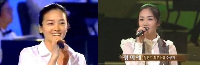 히든싱어를 통해 트로트 대세가 된 또 다른 인물은 정미애입니다. 히든싱어3의 이선희 편에 출연한 정미애는 당시 폐소공포증으로 커튼 뒤에서 노래하는 데 어려움을 겪는 바람에 제 실력을 발휘하지 못했다고 하는데요. 이미 2005년 전국노래자랑에 참가해 '아름다운강산'으로 최우수상을 수상한 이력이 있었기에 그 아쉬움은 더 컸지요.