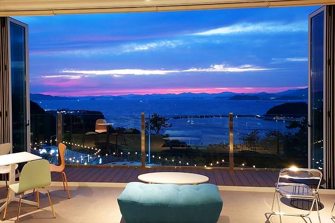 실내는 통유리창으로 이루어져 있어 어느 곳에서도 바다를 감상할 수 있습니다.