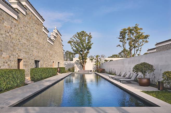 아만양윤(Amanyangyun)은 ‘평화로운 안식처’라는 뜻으로, 상하이 남부 외곽 고요한 호수와 아름다운 녹나무 숲에 자리 잡고 있다. 전통과 현대, 자연과 인공의 요소가 조화를 이루는 곳으로, 상하이에서 700킬로미터 떨어진 양쯔강 하류의 장시성 푸저우 마을에서 가져온 나무와 벽돌 등으로 리조트를 완성했다.