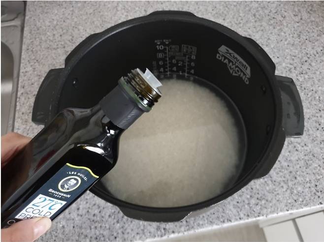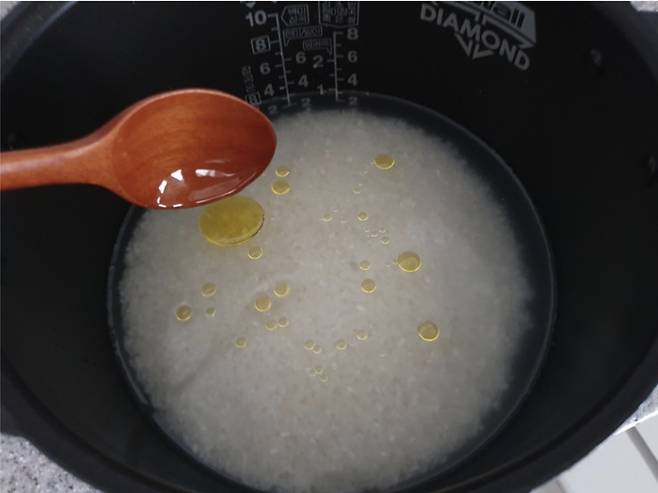 밥을 지을 때 식물성 기름을 첨가해 주세요