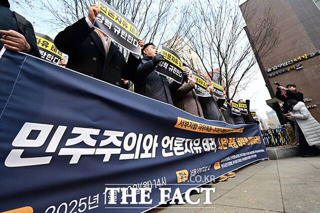 이들은 "윤석열의 비상계엄과 내란, 수사 불응으로 대한민국 민주주의가 세계적인 조롱거리가 된 마당에 극렬지지자들의 폭동과 난동으로 대한민국 민주주의는 씻을 수 없는 상처를 입었다"면서 "현업언론단체는 언론자유를 위협하는 일체의 행위에 견결하게 맞서며 그 책임을 끝까지 물을 것"이라고 했다.