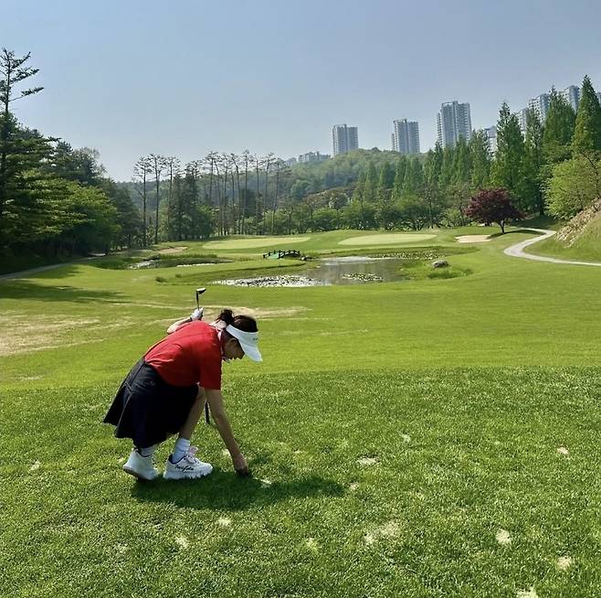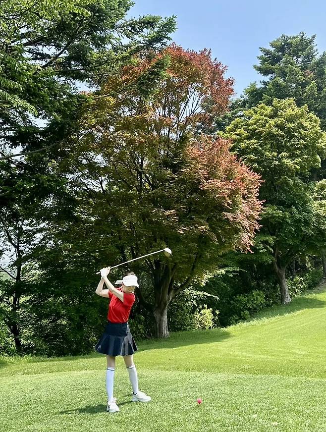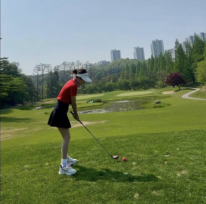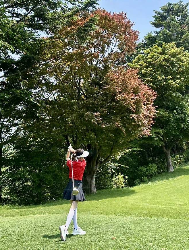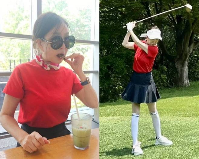 본격적인 골프 스윙을 선보이며 프로 못지않은 자세를 자랑한 박준금은 블랙 플리츠 스커트, 그리고 무릎까지 올라오는 화이트 니삭스와 스니커즈로 스포티하면서도 여성스러운 골프 스타일을 완성했습니다.