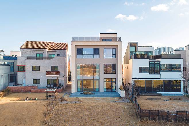 본 주택은 골프장 택지지구에 위치한다. 필드 뷰와 정면으로 마주하도록 설계해 입지적 강점을 살렸다. 자연 채광도 중정식 평면을 적용해 극대화했다. 거실과 주방은 실내에서도 풍경을 온전히 즐길 수 있도록 개방감을 강조했다.