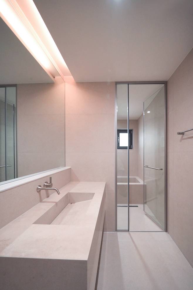 가구를 제작하거나 마감재를 통일해 군더더기 없는 고급스러운 공간으로 계획했다. 색상이나 조적 욕조 등을 더해 전체적으로 세련된 분위기로 완성했다.