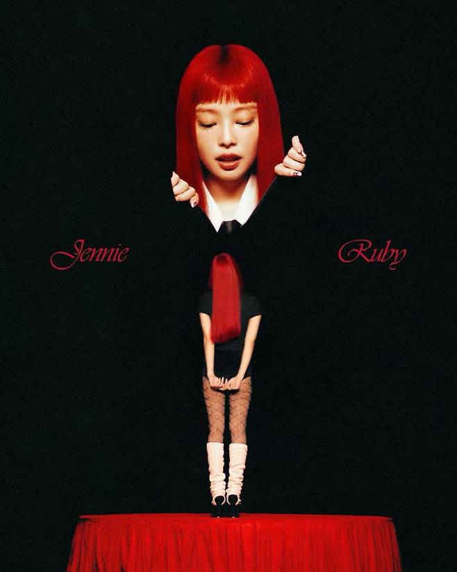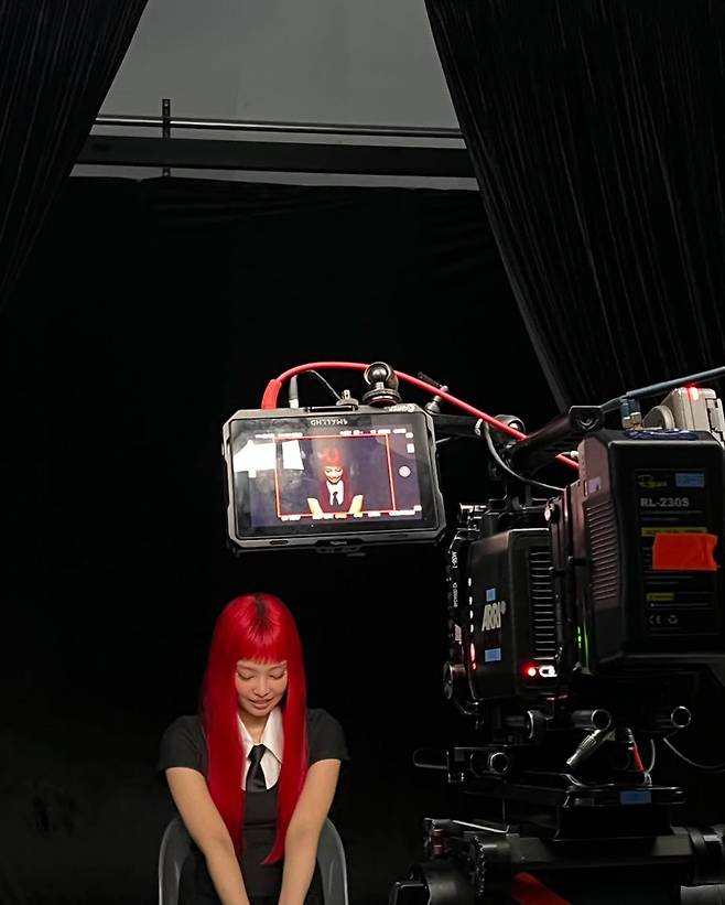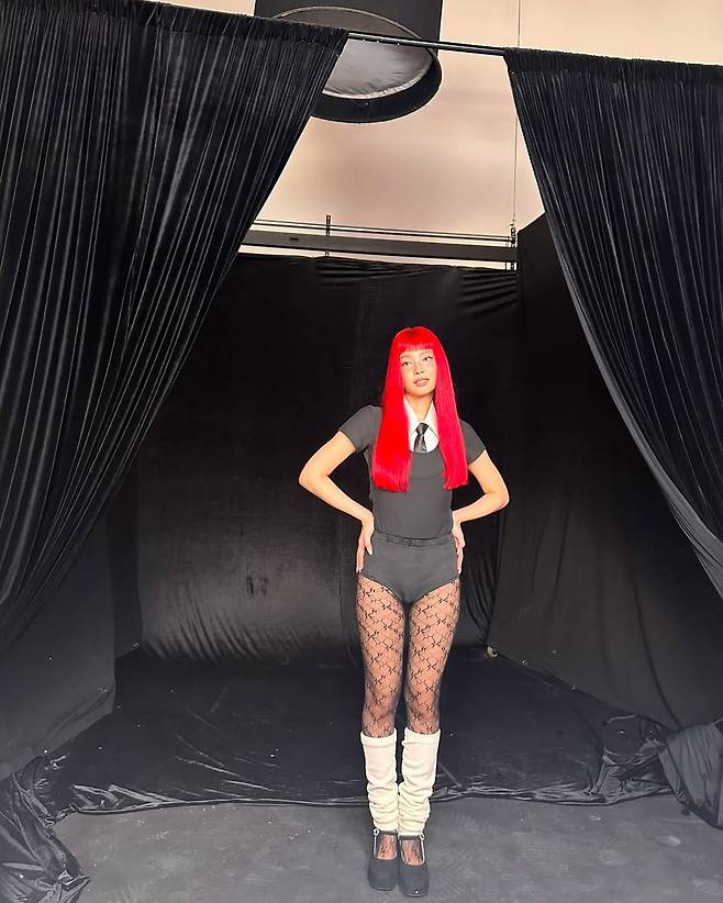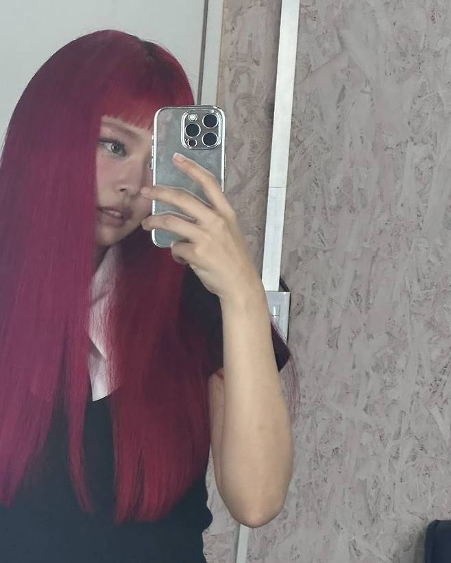 이번 스타일링에서 단연 화제가 되었던 것은 강렬한 레드 컬러로 염색한 제니의