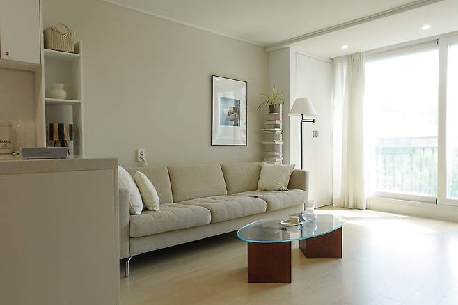 아침에 일어나면 이곳 소파에 느긋하게 앉아 멍을 때리거나 차를 마시곤 해요. 또 저녁에는 퇴근하고 온 남편과 수다를 떨고, 영화도 보고, 책을 읽곤 합니다.