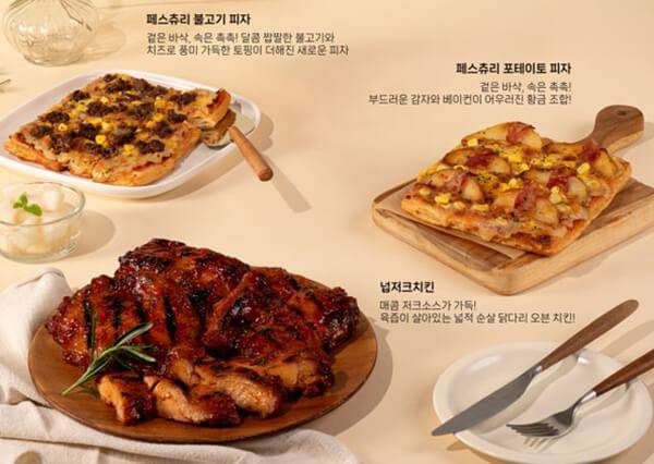 땅땅치킨은 신메뉴 ‘넙저크치킨’을 출시했다. 넙저크치킨은 일반 순살치킨의 2배에 달하는 크기가 특징이다. 자메이카 전통 향신료인 저크소스를 닭다리살 순살에 마리네이드해 이국적이면서도 매콤달콤한 맛을 구현했다. 130겹의 결이 살아있는 바삭한 데니쉬 페스츄리 도우를 사용한 ‘페스츄리 포테이토 피자’와 ‘페스츄리 불고기 피자’도 함께 선보였다. 넙저크치킨의 매장 판매가는 21,900원이다.