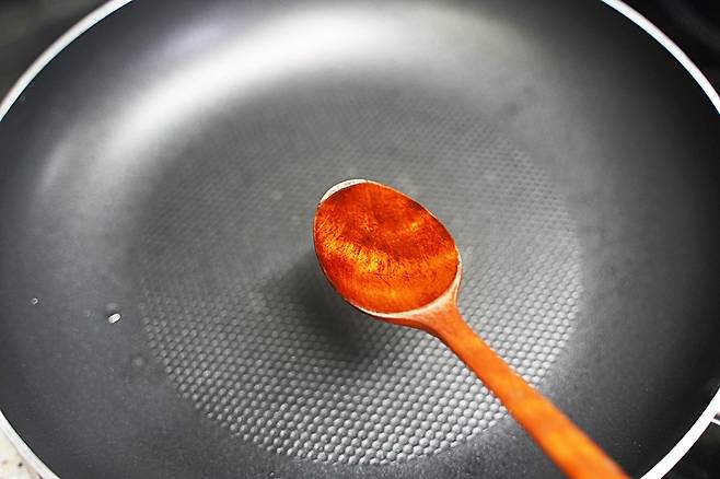 진간장 1큰술을 팬의 가장자리에 넣습니다