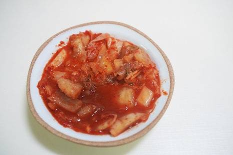 김치는 1컵을 먹기 좋은 크기로 썰어 준비합니다