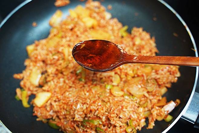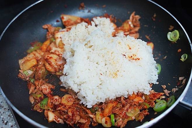 고슬고슬하게 참치김치볶음밥이 완성된것 같아요