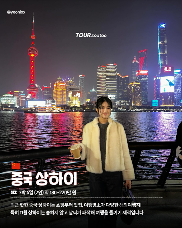 최근 핫한 중국 상하이는 무비자 시행으로 많은 분들이 방문하고 있는 해외여행지입니다. 특히 11월 상하이는 습하지 않고 날씨가 쾌적해 여행을 즐기기 제격입니다.