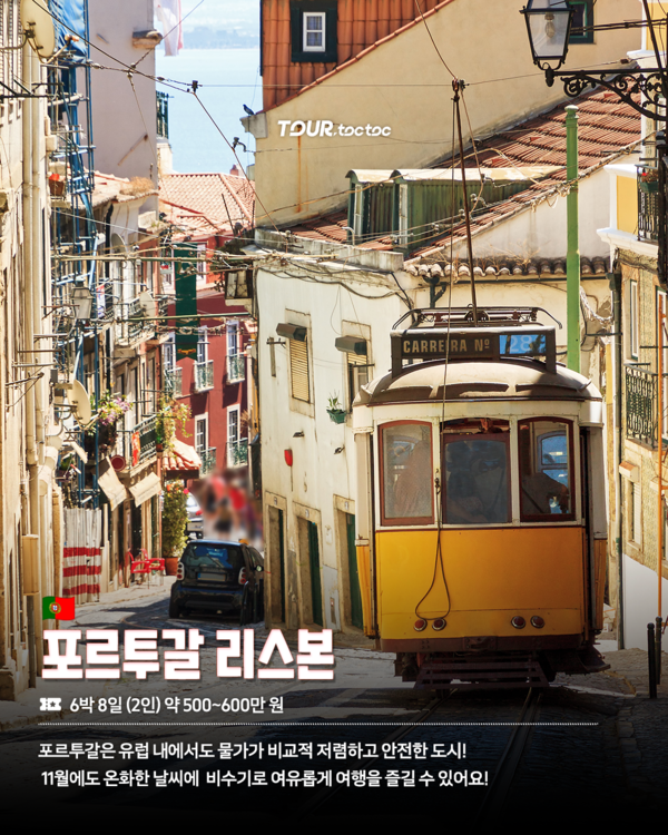 포르투갈은 유럽 내에서도 물가가 비교적 저렴하고 안전한 도시로 손꼽히는 여행지입니다. 포르투갈의 수도 리스본은 11월에도 온화한 날씨를 유지해 늦가을 유럽 여행지로 딱입니다.