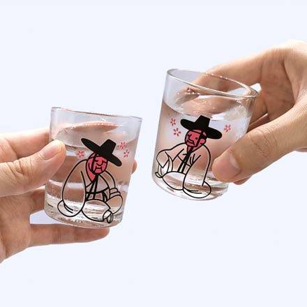 김홍도의 풍속화에서 튀어나온 세 선비가 유리잔 위로 걸터앉았다. 하얗던 얼굴은 차가운 술이 닿는 순간 취한 듯 붉게 물든다. 유쾌한 반전은 온도에 반응하는 변색 프린팅 덕분이다. 온도가 18℃ 이하일 때 변색이 시작되고, 10℃ 이하일 때는 더욱 선명해진다. 가족과 함께하는 술자리가 한층 즐거워지며, 건배는 조금 더 특별해진다.