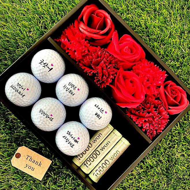 사진, 손 글씨, 캐릭터 일러스트 등 원하는 요소를 자유롭게 담아 커스텀할 수 있는 골프공. 시안을 직접 제작해 AI 파일로 보내도 되고, 이미 준비된 다양한 디자인 중에서 선택할 수도 있다. 관상용이 아닌 실제 필드에서도 문제없이 사용할 수 있는 것도 장점. 골프를 즐기는 부모님께 센스 있는 라운딩 아이템으로 마음을 전해 보자.
