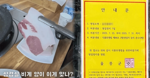 최근 울릉도의 한 식당에서 손님에게 제공한 비계 삼겹살이 사회적 파장을 일으킨 가운데, 해당 음식점이 영업 정지 처분을 받았다는 소식이 전해졌습니다.