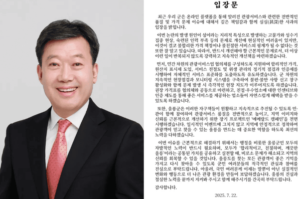 사건이 커지자 남한권 울릉군수는 공식 입장을 통해 국민과 관광객에게 직접 사과했는데, 그는 SNS에 “울릉도의 관광 서비스에 실망을 안겨 드려 죄송하다”고 밝히며 행정적으로도 개선책을 마련하겠다고 강조했습니다.