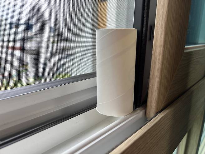 휴지심 특유의 유연함 덕분에 창틀 틈새 모양에 맞게 변형이 가능해요. 플라스틱 노즐보다 밀착력이 좋고, 먼지 흡입력도 좋아요. 1회용이라 한번 사용하고 버릴 수 있어서 위생적이에요