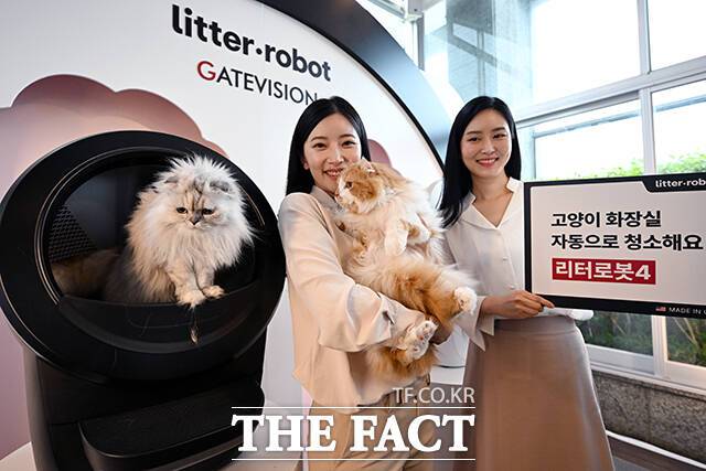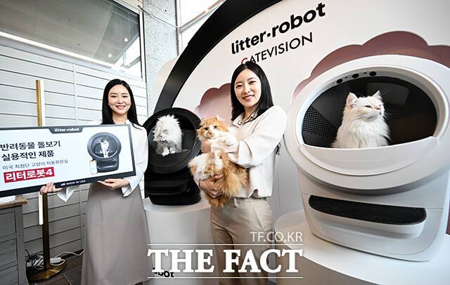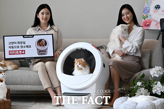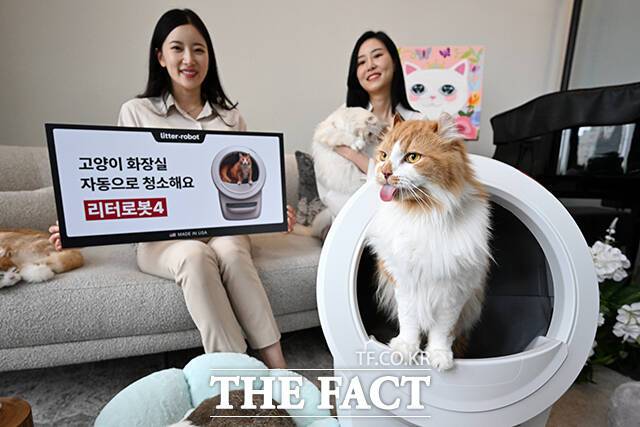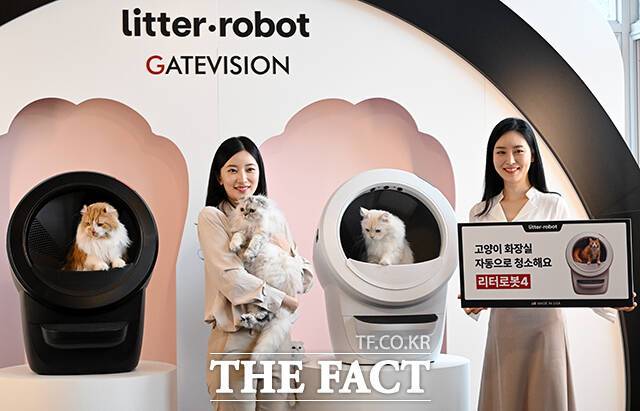 [더팩트ㅣ서예원 기자] 고양이 자동 화장실 '리터로봇4'가 출시된 20일 오전 서울 강남구 라까사호텔에서 열린 런칭쇼에서 모델들이 제품을 선보이고 있다.