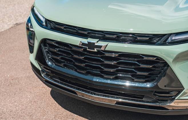 1) 볼드한 전면부: 쉐보레 특유의 듀얼 그릴과 날렵한 LED 헤드램프가 강인한 첫인상을 만듭니다.