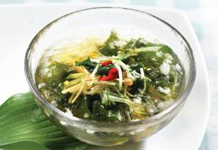 미역은 열을 내리는 찬 기운의 음식이다. 미역을 섭취하면 땀 배출로 인해 부족해진 수분과 미네랄을 채우는 데 도움이 된다. 미역에는 엽산, 아연, 칼슘, 마그네슘, 비타민A·C·E·K 등이 포함돼 있다. 미역에는 알긴산 등 다량의 식이섬유가 함유돼 있어 혈액순환을 원활하게 해 체내에 쌓인 열을 낮추고 장 기능을 개선한다.