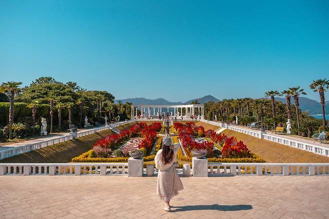 특히 외도 보타니아의 대표적인 포토 스팟인 ‘비너스 가든’은 12개의 비너스 석상이 식물들과 어우러져, 버킹엄 궁전의 정원을 모티브로 설계된 랜드마크 역할을 합니다.