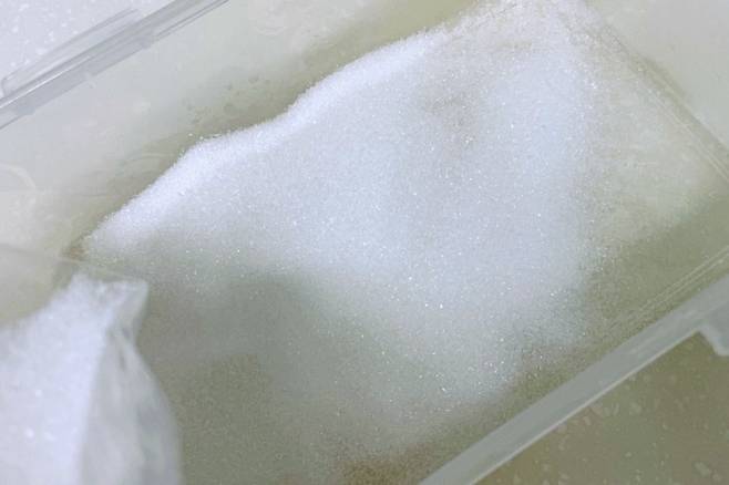 바로 설탕을 활용하는 건데요. 밀폐용기에 설탕을 얇게 깔아주세요. 설탕 대신 소금 사용하셔도 됩니다.