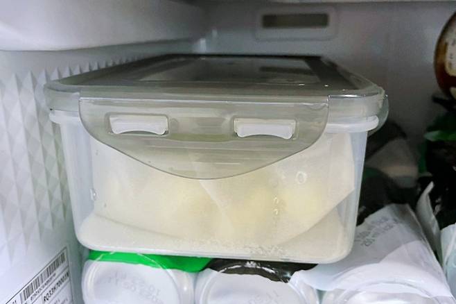 지퍼백에 다진 마늘 사용하고 남았을 때 이대로 냉장고에 보관하셨다가 사용하면 되니 편하답니다.