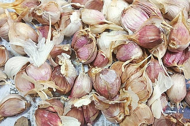 일단 통마늘은 껍질에서 바스락 소리가 날 정도로 바짝 말린 상태여야 좋고요. 잘 말린 통마늘을 오래 보관하고 싶다면 '심지' 부분을 꼭 제거해 주세요.